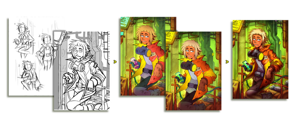 ILLUSTRATION PROCESS● I will start working on the drawings once full payment is received.● From the moment the commission is requested to the delivery of the final approved artwork, full body, half body, or bust pieces with background usually take me between 3 weeks and 1 month. Chibis, icons and full body, half body, or bust pieces without background usually take me around 2 weeks. It might take a bit more or less time depending on complexity and revisions (I usually work on several orders at once) If you want an update on your commission, just ask, and I'll send you a work-in-progress update.● The drawing process has 3 stages: Rough sketch, linework with base colors, and final full-color drawing.